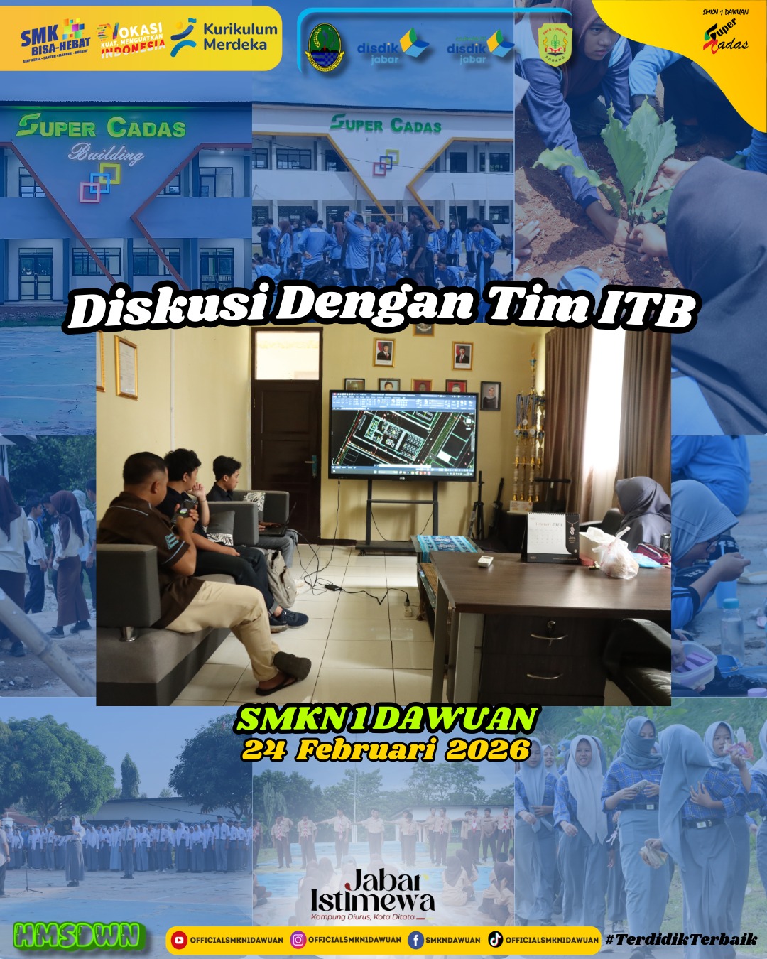 Pelaksanaan diskusi dengan tim perancang revitalisasi dari ITB ( Institut Teknologi Bandung ) tentang pembangunan SMKN 1 Dawuan.