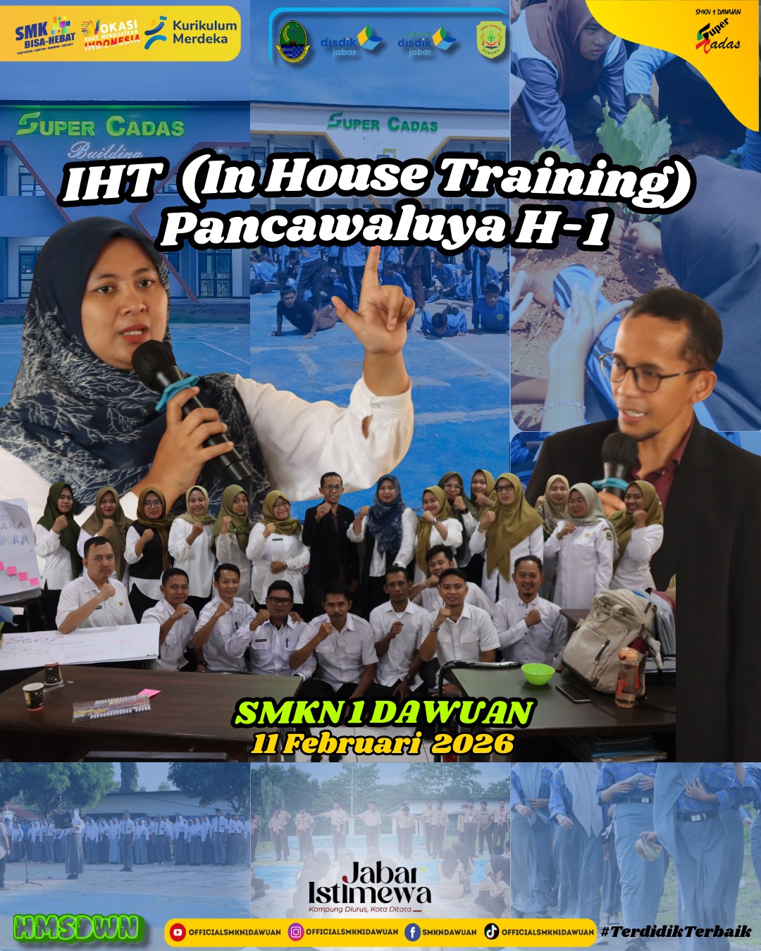 Pelaksanaan IHT In House Training yang di laksanakan di SMKN 1 Dawuan selama 2 har, dalam pelaksanaan IHT ini GTK SMKN 1 Dawuan mendapatkan pelajaran dan cara ajar yang bari dan juga relevan.