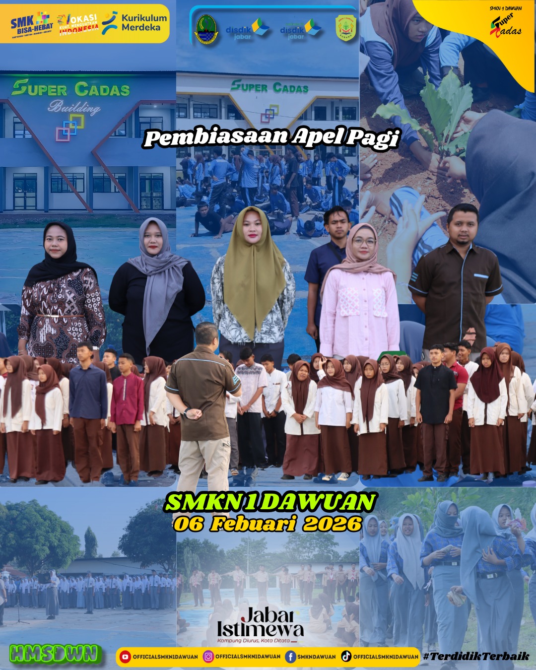 Pembiasaan pelaksanaan apel pagi dengan pembina Bapak Nurohim, S.Pd. Navigasi pos Pengukuran Lapangan Oleh Tim Perancangan Revitalisasi Fisik SMKN 1 Dawuan Perpisahan GTK Mutasi