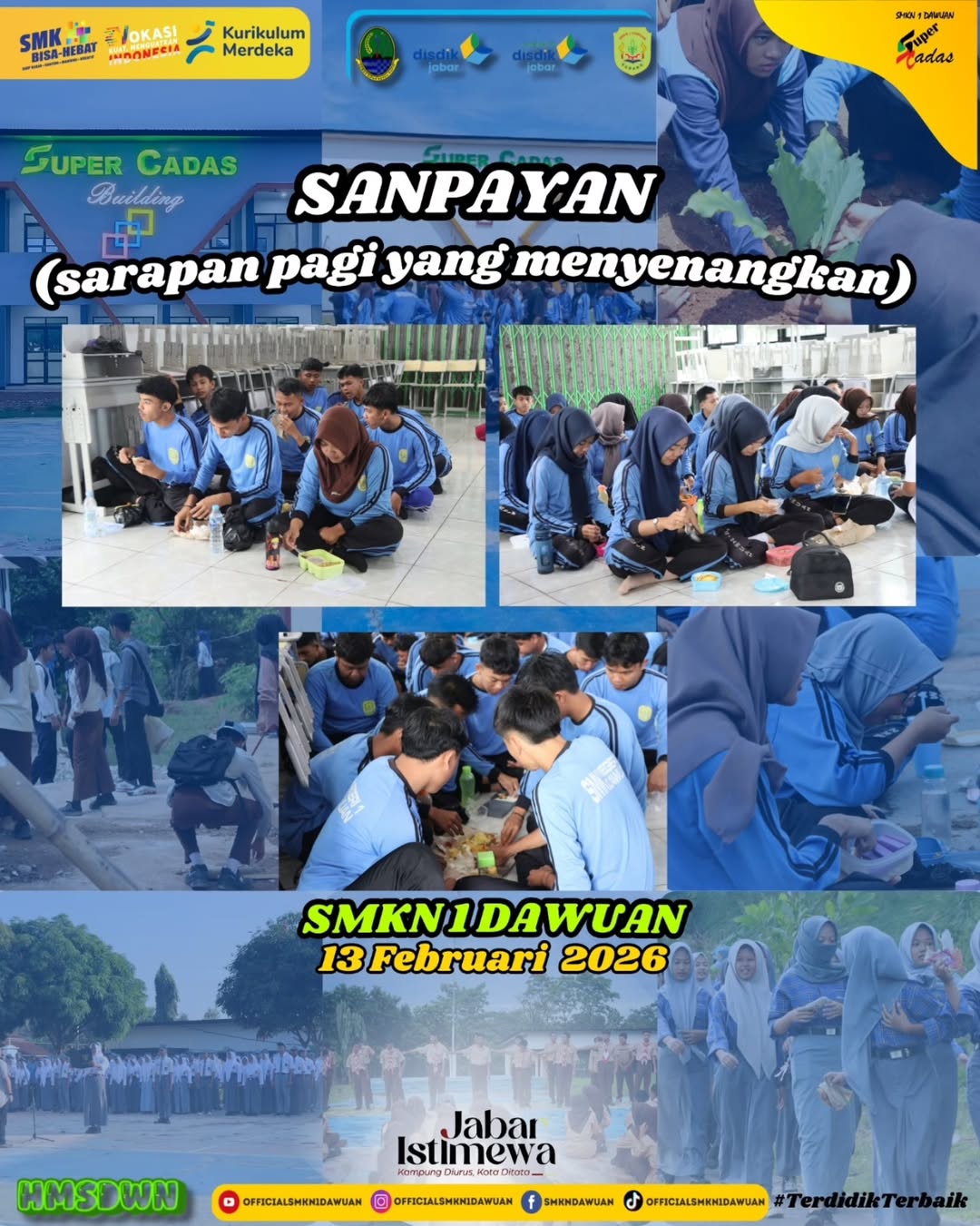 Sarapan Pagi Yang Menyenangkan sebagai bagian dari program Pancawaluya yaitu membawa bekal dari rumah. Kegiatan kali ini dilaksanakan oleh seluruh kelas XII sebelum mengikuti kegiatan Propesi Kerasan.