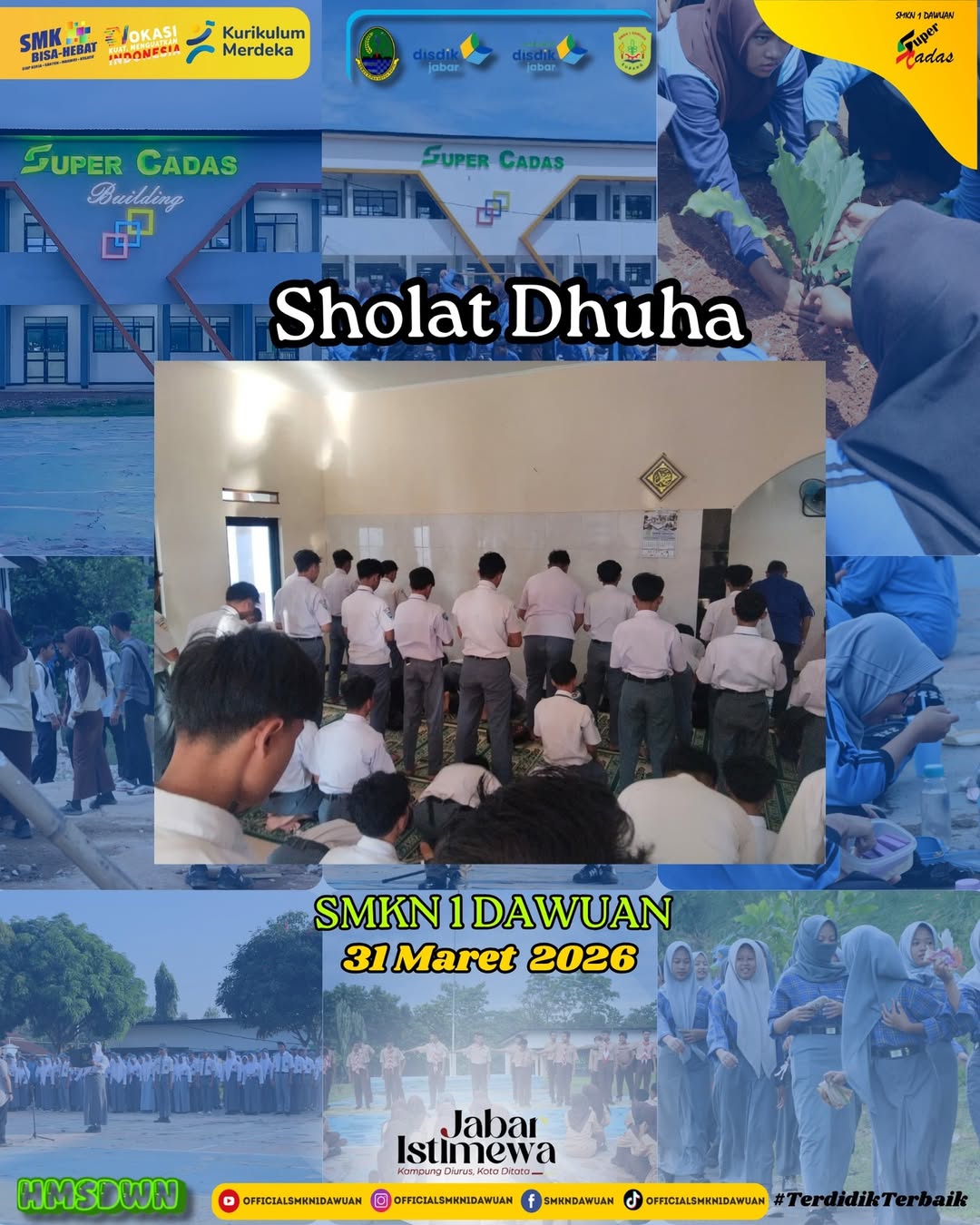 Mengawali hari dengan keberkahan, siswa SMKN 1 Dawuan melaksanakan sholat Dhuha bersama sebagai wujud ikhtiar mendekatkan diri kepada Allah SWT.