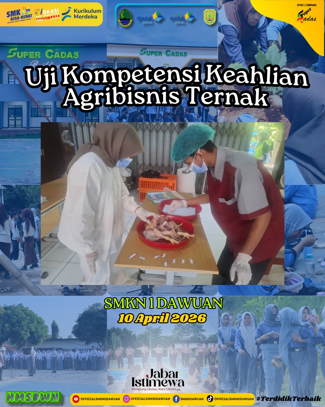 Siswa-siswi kompetensi keahlian Agribisnis Ternak SMKN 1 Dawuan telah melaksanakan Uji Kompetensi Keahlian (Ujikom) di SMKN 1 Cikaum pada tanggal 9 – 10 April 2026 sebagai bentuk pembuktian kemampuan dan kesiapan menghadapi dunia kerja.