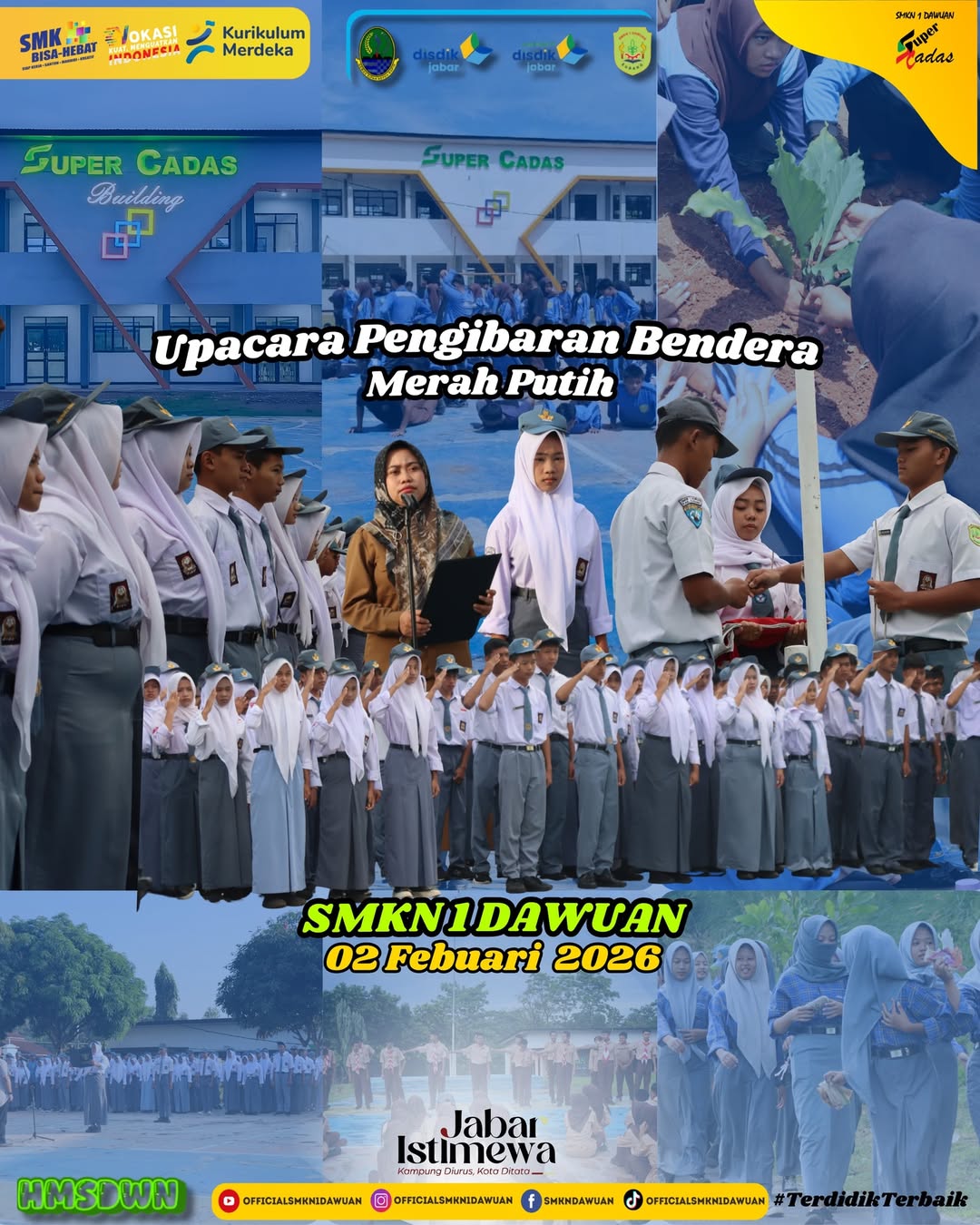 Upacara Pengibaran Bendera Merah Putih dengan pembina Ibu Wakasek Bidang Kurikulum Ibu Endar Eka Ratnawati, S.Pd.