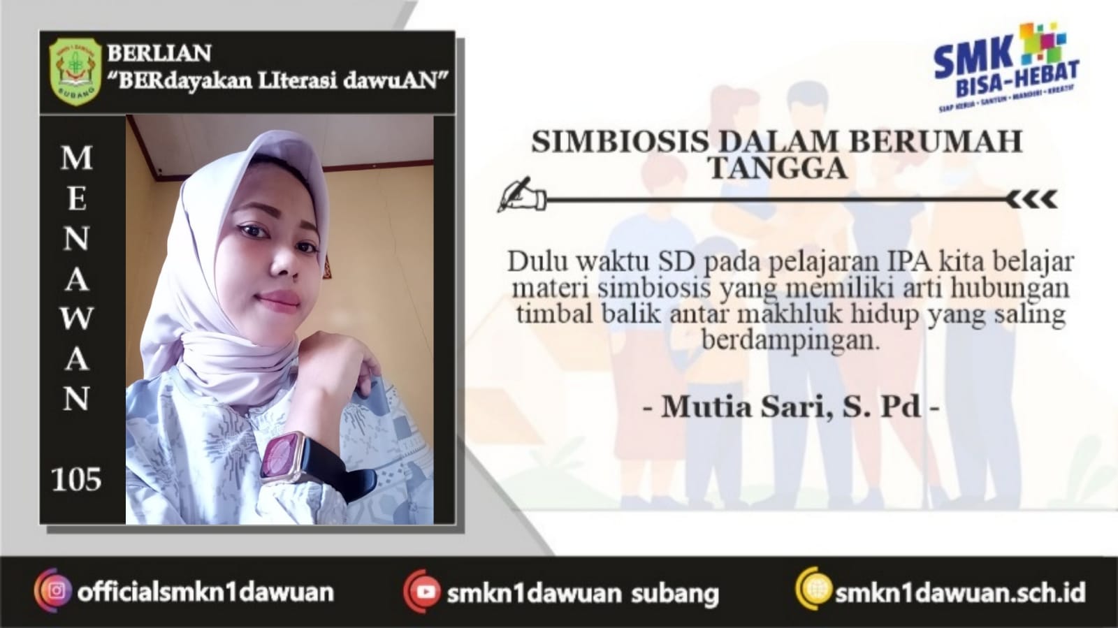 Dulu waktu SD pada pelajaran IPA kita belajar materi simbiosis yang memiliki arti hubungan timbal balik antar makhluk hidup yang saling berdampingan. Terdapat 3 jenis simbiosis yaitu, simbiosis mutualisme, simbiosis komensalisme dan simbiosis parasitisme. Begitupun dalam kehidupan berumah tangga yang ideal harusnya punya simbiosis mutualisme.